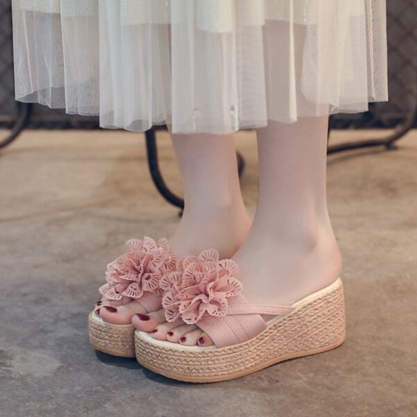 Korean Style Sweet Big Flower One-Line Outer Beach Shoes For Women, Balance Heel-RV613