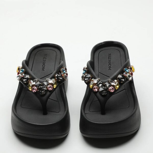 Women’s white wedge heel flip-flops with rhinestones, Balanced Heel – RV730