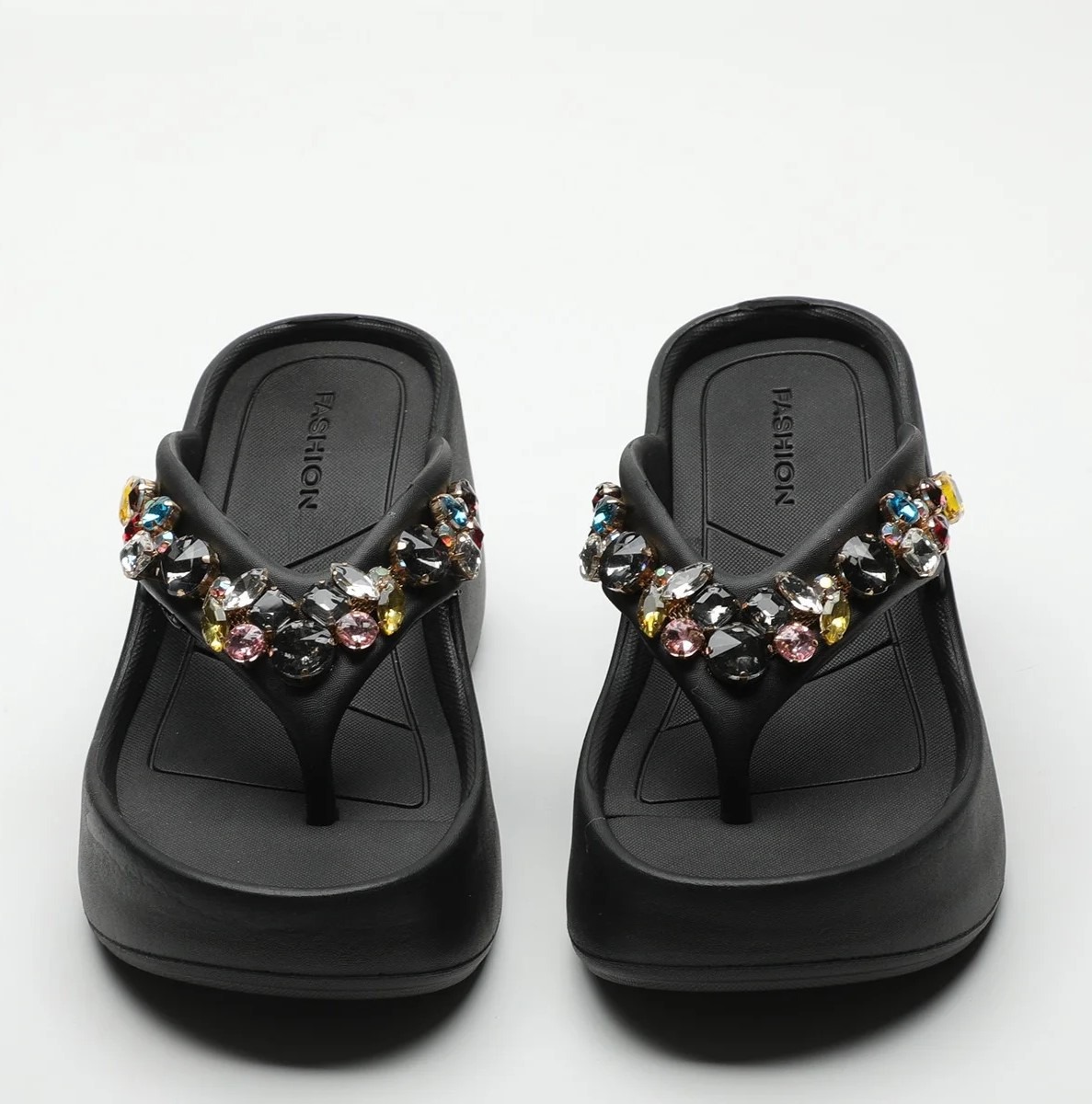 Women’s white wedge heel flip-flops with rhinestones, Balanced Heel – RV730